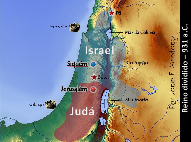A história da divisão do Reino de Israel. No ano de 931 a.C, depois da morte do grande sábio ( chacham - hb ), o Reino de Israel se dividiu em Norte (que passou a se chamar Reino de Israel) e Reino Sul (que passou a se chamar Reino de Judá ). A mão do Deus poderoso que mantinha e conduzia o reino unido de Israel desapareceu.