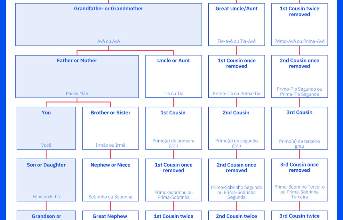 Árvore genealógica: falando de família em inglês. Falar da família é uma das coisas que fazemos quando conhecemos gente nova. Você sabe falar da sua família em inglês? Vamos ajudar você. Porém, a gente tem consciência de que, hoje, a configuração da família é cada vez mais diversa e que fica cada vez mais esquisito fazer uma.