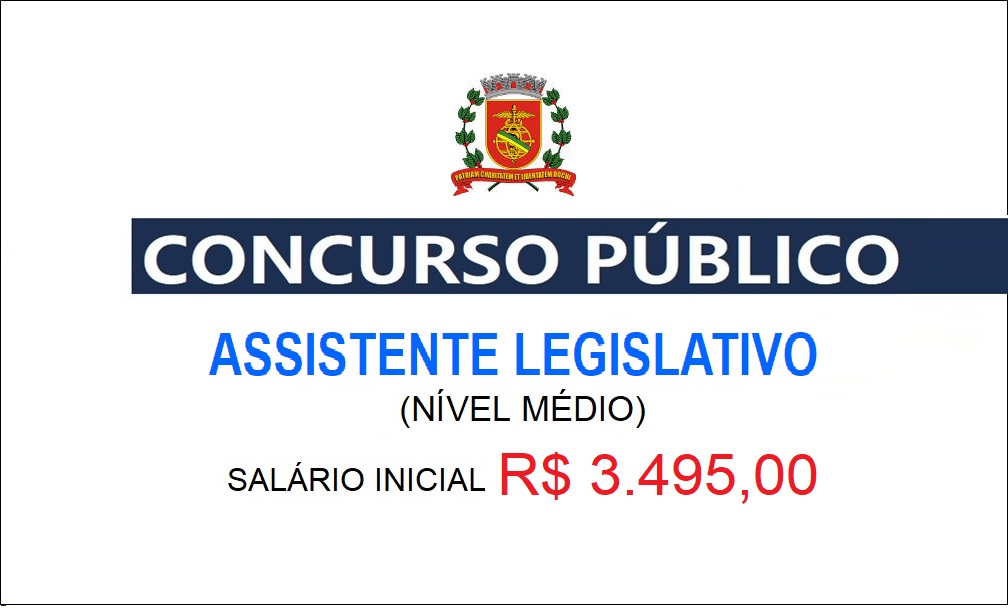 Aberto Concurso público para Assistente Legislativo (Nível Médio). Salário de R 3.495,00