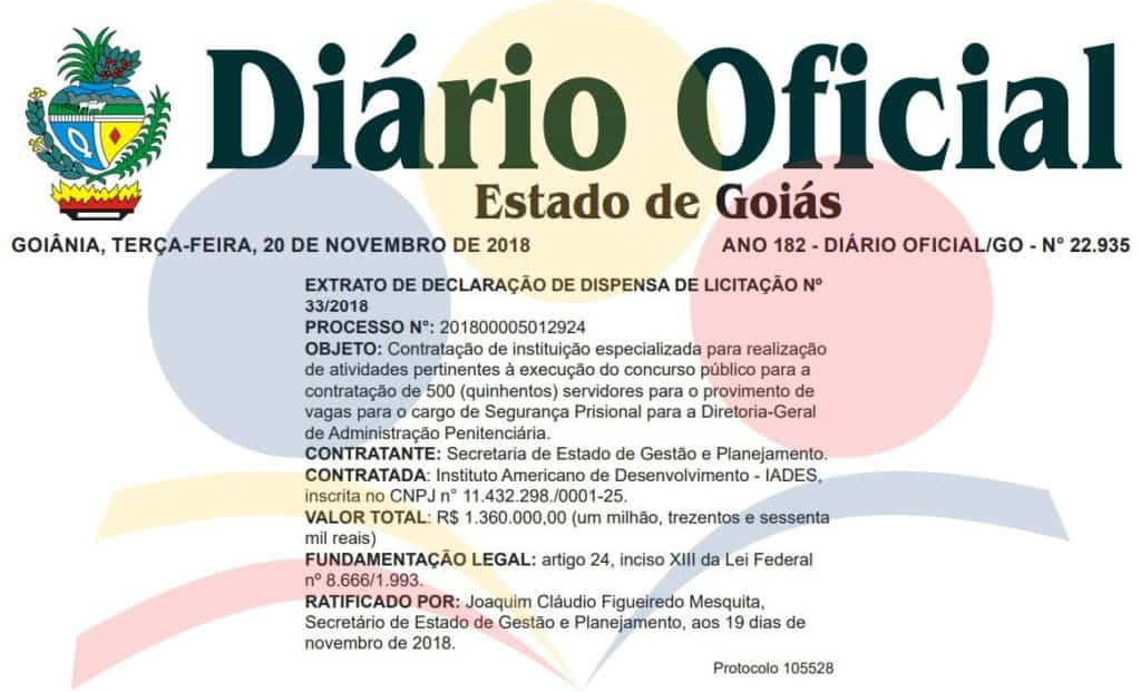 DIÁRIO OFICIAL DO ESTADO DE GOIÁS . BUSCAR POR. DATA. Buscar por nome completo ou palavra-chave. Início Fim. ÚLTIMAS EDIÇÕES. Verifique o código de autenticação no rodapé da página do Diário Oficial e digite abaixo. OK. Diário Oficial; Diário Oficial - DOWNLOAD. ABC- Agência Brasil Central. Rua SC-01, nº 299, Parque Santa.