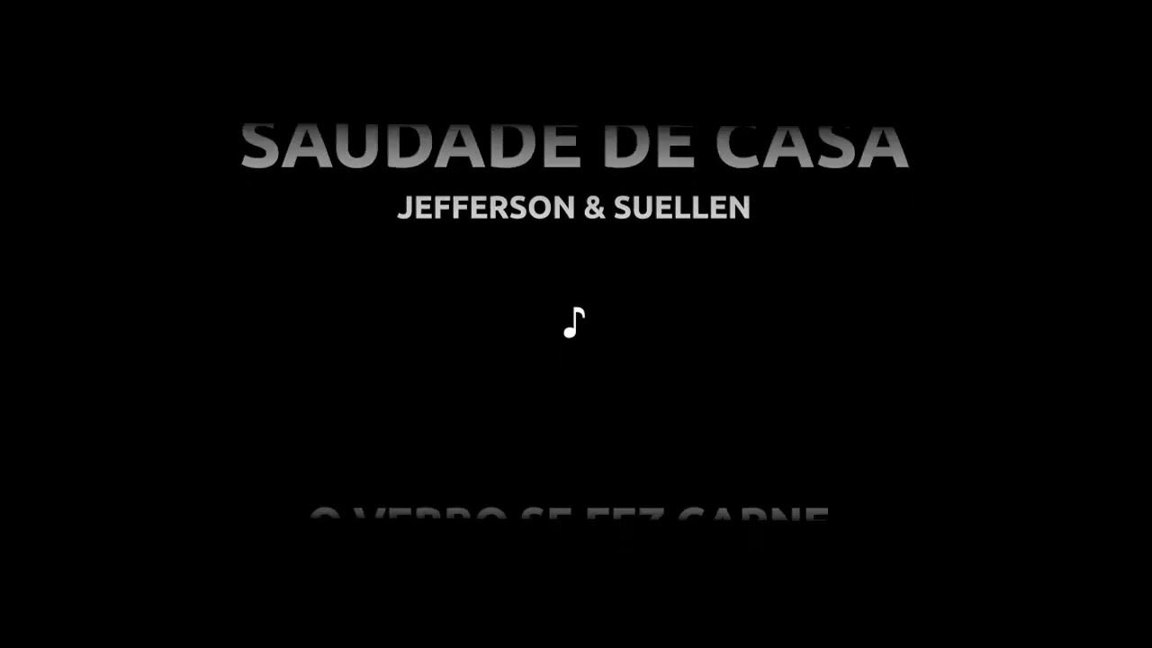 SAUDADE DE CASA┃JEFFERSON & SUELLEN (CLIPE OFICIAL - AO VIVO)Letra - SAUDADE DE CASA(Compositor: Jeferson Rodrigo)O VERBO SE FEZ CARNE, NA TERRA DESCEUOPEROU.
