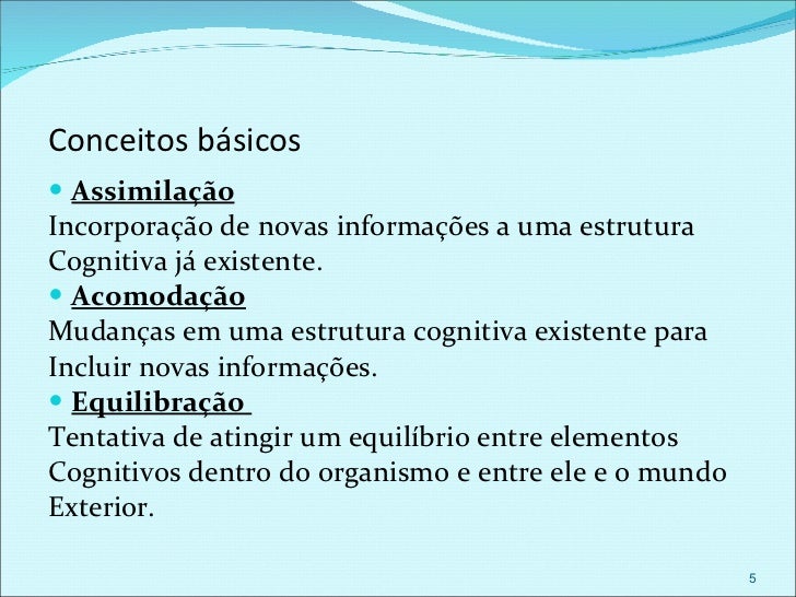 Publicado em 24 de setembro de 2019 SÓ ESCOLA. Piaget e os conceitos de assimilação, acomodação e equilibração - Conforme Cunha (2002), Piaget considera que o processo de construção do conhecimento inicia-se com o desequilíbrio entre o sujeito e o objeto.