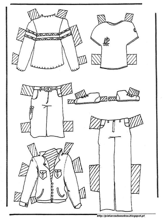 Desenhos para colorir, desenhar e pintar Desenhos de roupas para colorir e recortar