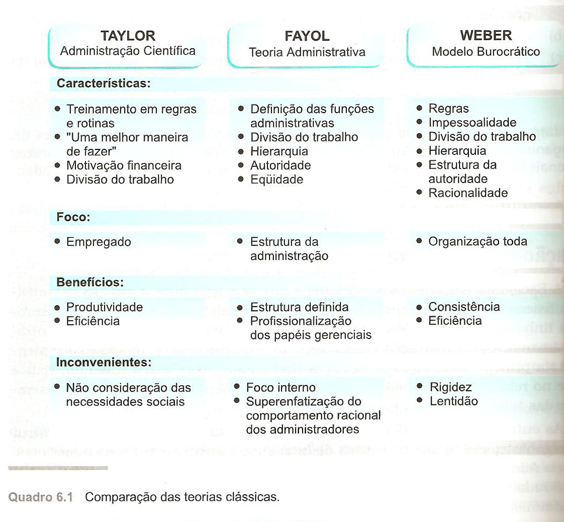 Administrando o Sucesso Quadro comparativo entre as Teorias Clássicas