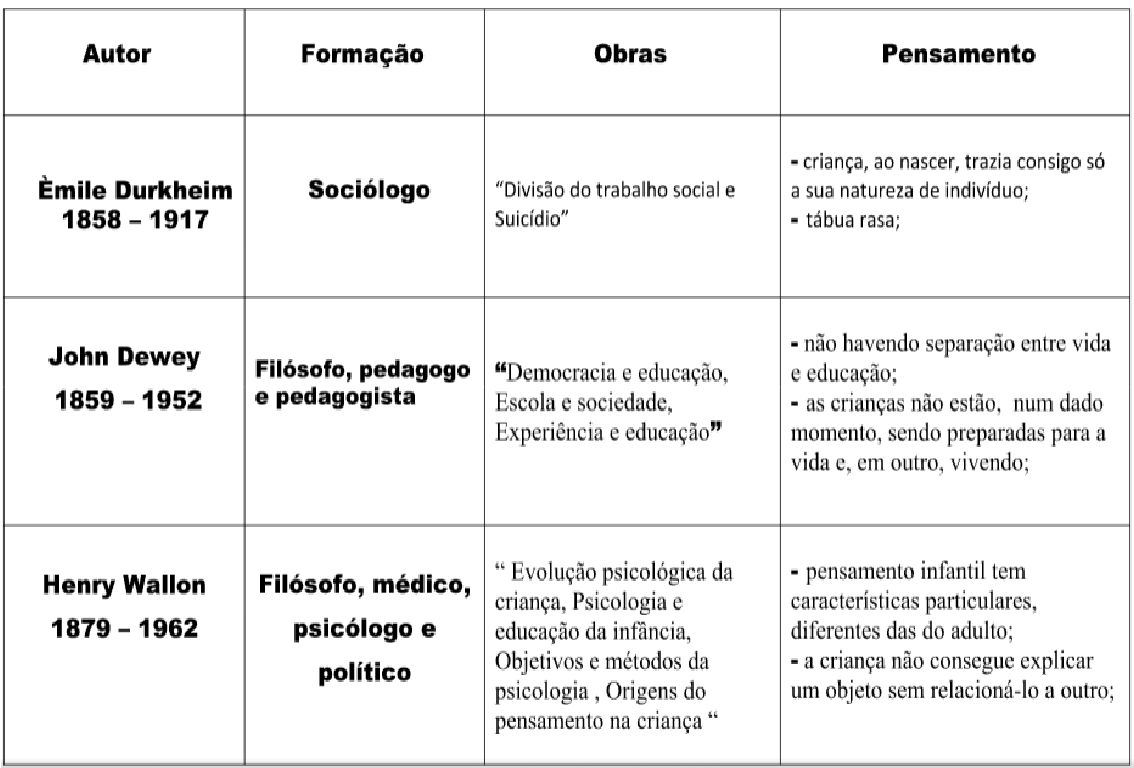 Maria Zambrano Tabela de teorias da educação e seus respectivos autores